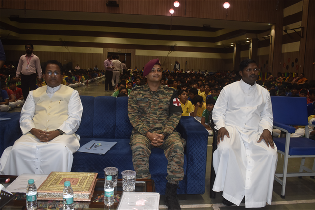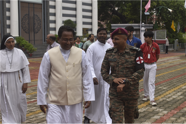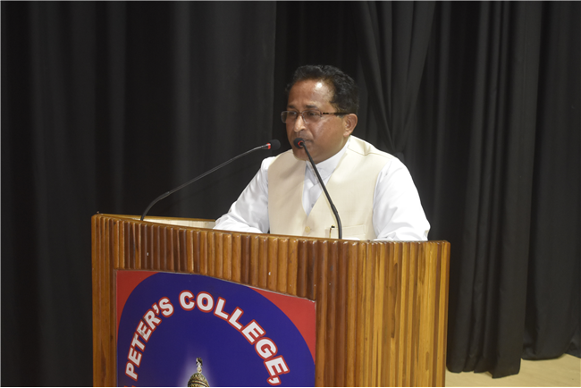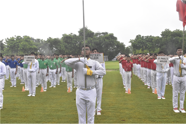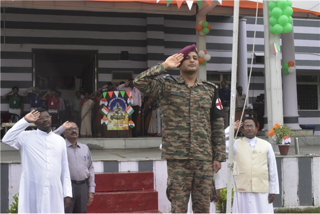 78th Independence Day was celebrated in St. Peter's College with great enthusiasm. The programme started with prayer for the Nation.... The college students presented March Past. Rev. Fr. (Dr.) Alwyn Pinto and Chief Guest Lt. Col. Dr. Ritesh Goel unfurled the National Flag. Group songs and dances of different houses were put up on the stage. The programme was ended with the speech of Chief Guest and Fr. Principal.