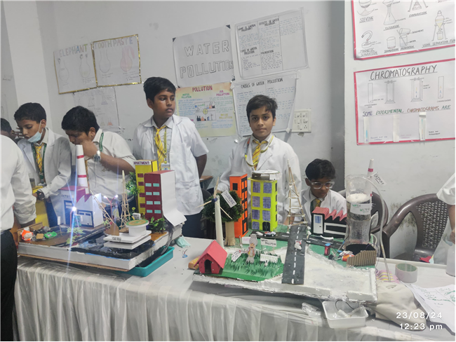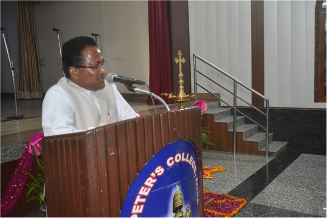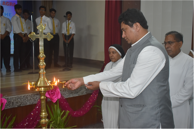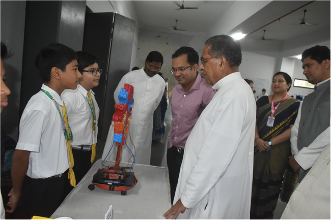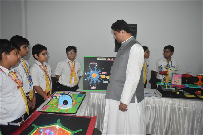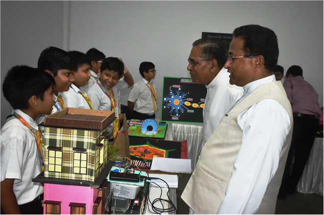 An innovative, informative and highly imaginative science exhibition was organized by the Junior Section (Classes VI to VIII) students of... St. Peter’s College on August 23, 2024 showcasing the inexplicable scientific aptitudes and temper of the budding scientists. The programme initiated with the prayer by Rev Fr. Louis Xess, the Vice-Principal and lighting of the ceremonial lamp by the Chief Guest Dr. Amit Agarwal, a renowned Orthopedic Surgeon, Principal Fr. Dr. Alwyn Pinto, Manager Fr. Ignatius Miranda, Headmistress Sr. Thereslit and other eminent fathers and sisters.