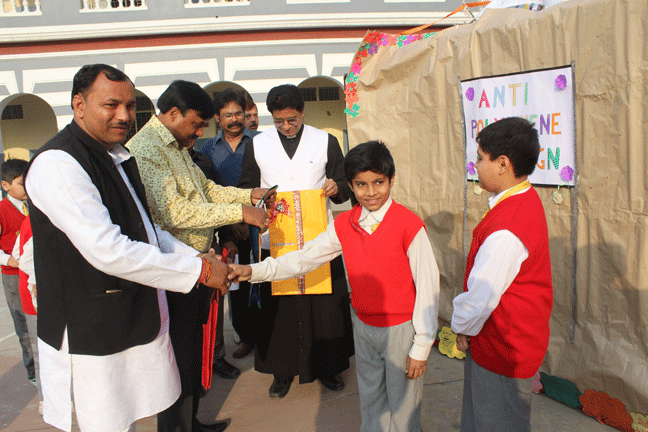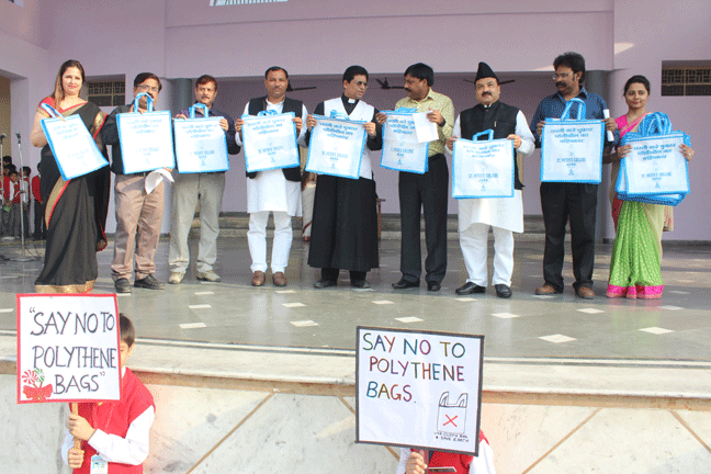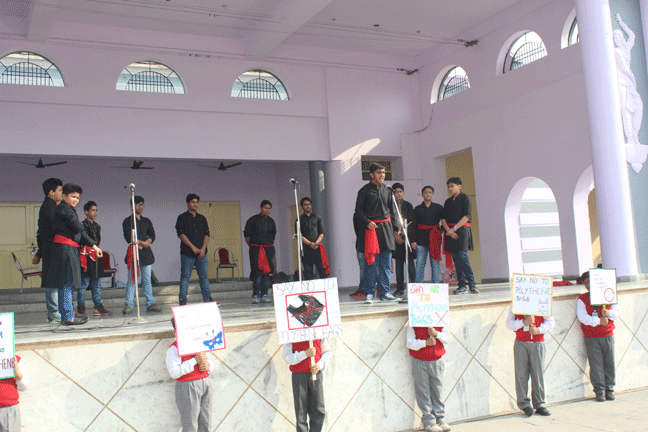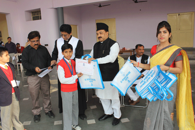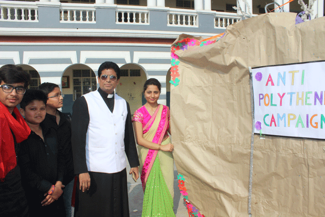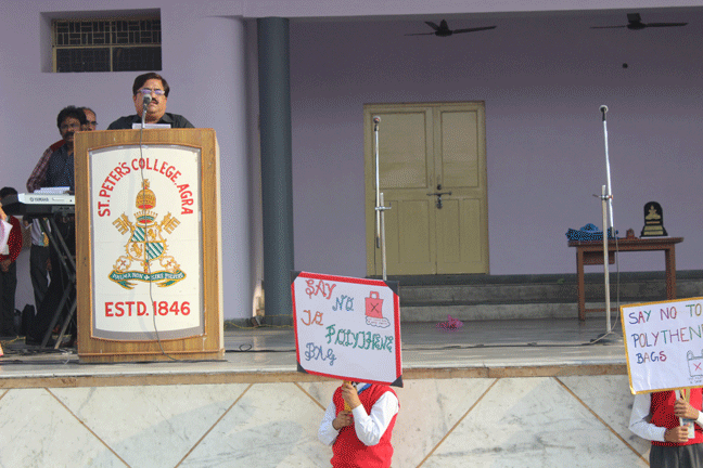 St. Peter’s College, Agra has initiated an Anti-Polythene drive. The programme was started in the school assembly. Almost 400 students showed their talents and commitment not to use polythene bags. The Chief Guest of the programme was Mr. Rajesh Kumar Srivastav(ADM City, Agra). This noble effort was praised by the Chief Guest and other invited dignitaries