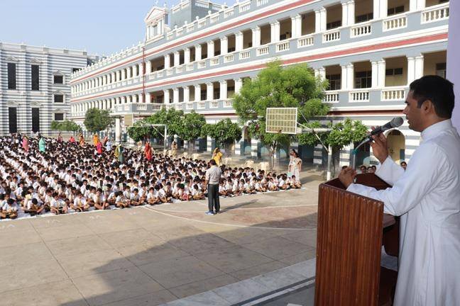On 5th July 2018, a special combined assembly was held for the farewell of our outgoing Vice-Principal, Rev. Fr. Praveen... D’costa. We also welcomed our incoming Vice-Principal, Rev. Fr. Lawrence V. Raja. The program was commenced with a prayer by Rev. Sr. Diasy Maria (Headmistress). Rev. Fr. Bhaskar (Manager) and Rev. Fr. Paul Thannickal (Principal) were also present along with the staff and students. The farewell ceremony was coordinated by Mrs. Shabistan Hussain.