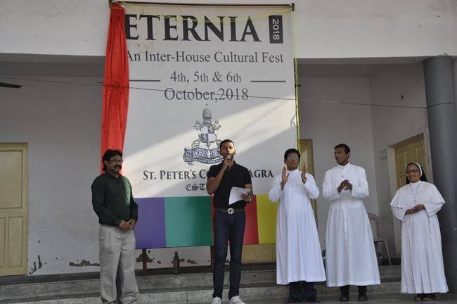 On 4th October, 2018 St. Peter's College, started it's Inter house cultural fest 'ETERNIA'. The inauguration of this event was... done by Mr. Rhythm Garg recently awarded as the Iron Man on India. Etrernia is an annual feature of the college in which students of all 4 houses participated in various competitions and get points for their respective houses. English play, Hindi Play, Singing, Essay writing, computer Quiz, Science Quiz, Collage, Debate etc. are various events which are staged in Eternia.