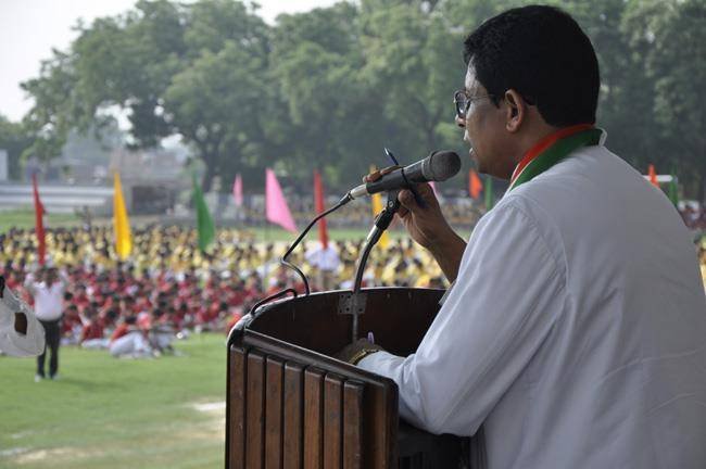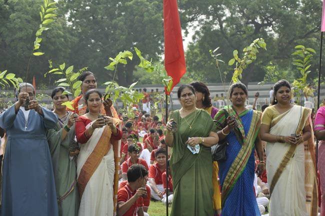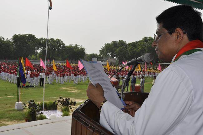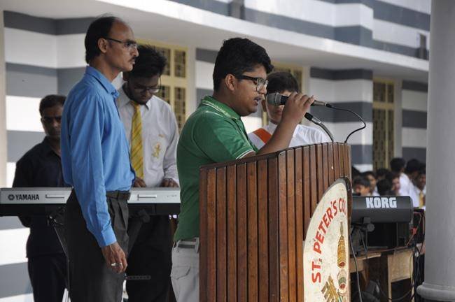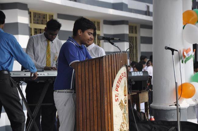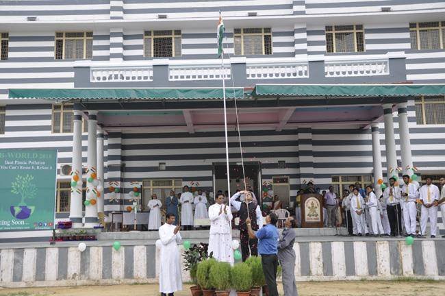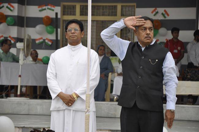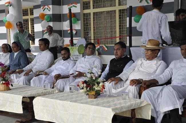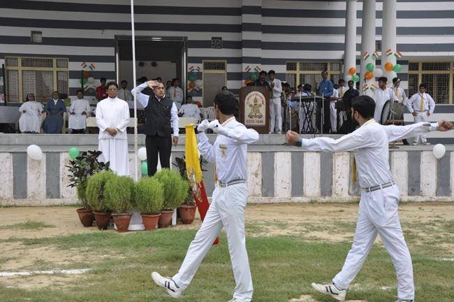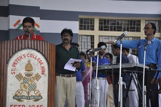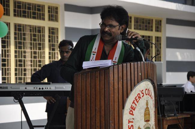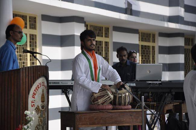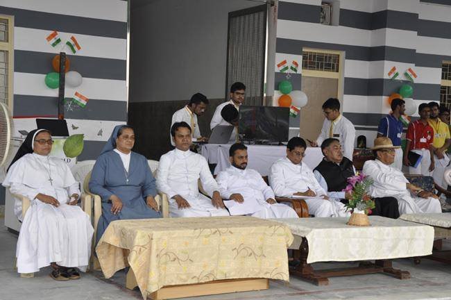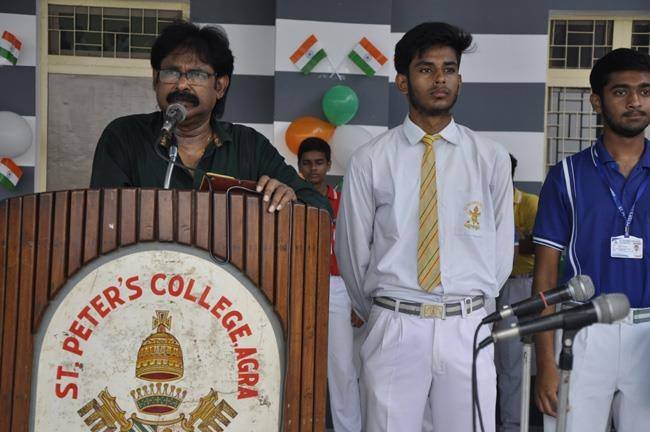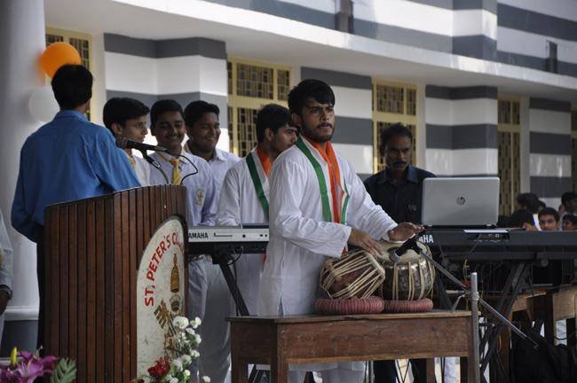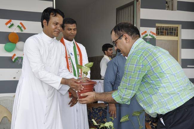 72nd Independence Day was celebrated in St. Peter's College with great enthusiasm. The programme started with prayer for the Nation.... The college students presented March Past and P.T display. Rev. Fr. Paul Thannickal and Chief Guest Dr. Sunil Bansal (Physician) unfurled the National Flag. Group songs of different houses were put up on the stage. The programme was ended with the inauguration of B-word (Commerce Fest) and speech of Chief Guest and Fr. Principal. On this occasion Fr. Principal distributed saplings to all the students.