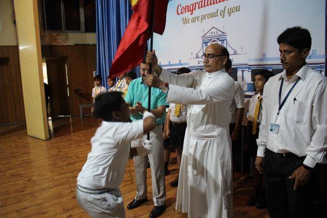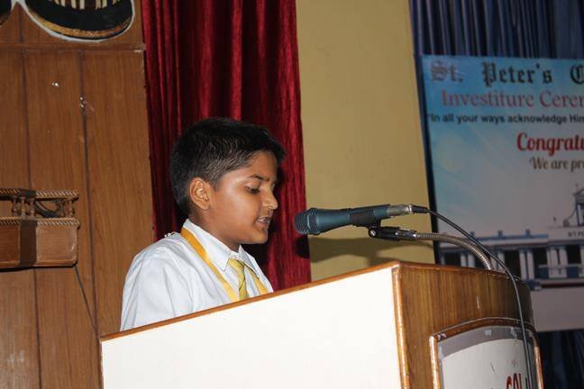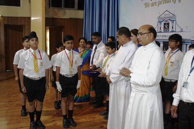The Installation Ceremony of the newly elected Students’ Parliament 2019-2020 was organized on Monday (01/08/19) in the Multipurpose Hall of... St. Peter’s College. The selected students were presented badges and flags on this occasion. The Principal Rev. Fr. Andrew Cooreia presented scrolls to the student representatives in the presence of their proud parents. The programme was co-ordinated by Mrs. Akanksha Chaddha, Mrs. Poonam Mathur, Mrs. Neha Sharma and Ms. Almas Dhanani. Rev. Fr. Paul Thannicka (Manager), Rev. Fr. Lawrence V. Raja (Vice Principal) were present in the function. The Chief Guest of the day was Mr. Love Kumar (D.I.G Agra).