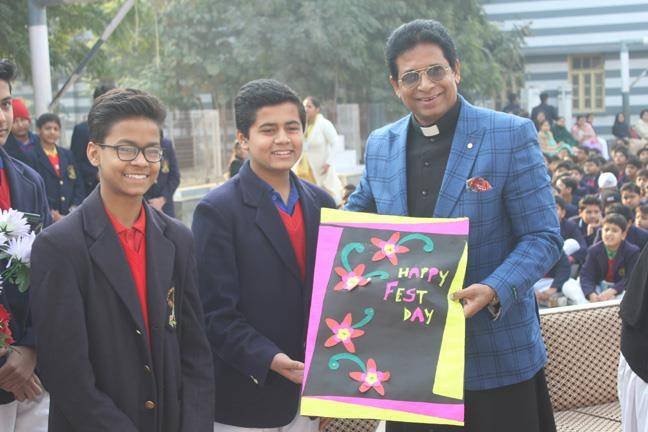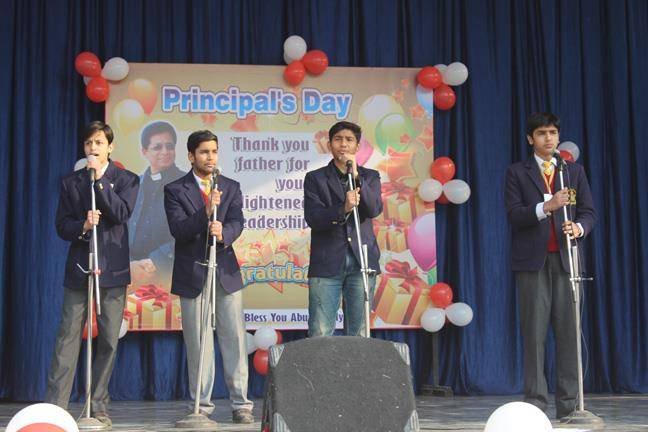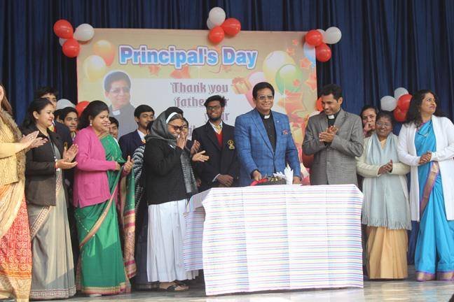 The Principal’s Feast was celebrated on 3rd January 2018 with great enthusiasm. It was due to the combined efforts of... teachers and students of class IV and IX that this program resulted into a successful one. Students performed rocking dance and sang melodious songs. The program started with a prayer by our Sr. Sonia. Then Rev. Fr. Paul Thannickal (Principal), Rev. Fr. Praveen D’costa (Vice-Principal), Rev. Sr. Daisy Maria (Headmistress) and all the teachers attended the cake cutting ceremony. The program ended with the inspiring words of Principal and vote of thanks by the Vice-Principal.