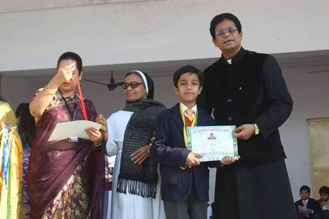 It was indeed a moment of immense pride for St. Peter's College as the students of our school yet again... proved themselves in the Spell Bee Competition. St. Peter's College was ranked as the school which got the maximum prizes in the competition. The award and cash prize was given to the students with their parents and best class prize given to the class teachers by Rev. Fr. Paul Thannickal. The Cooridinator of the programme was Mrs. Geeti Maheshwari. Fr. Principal gave away the prize to the students and wished them for their bright future.