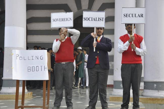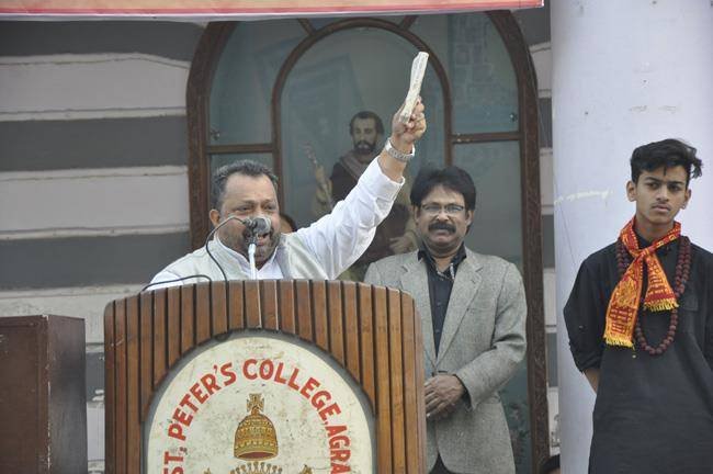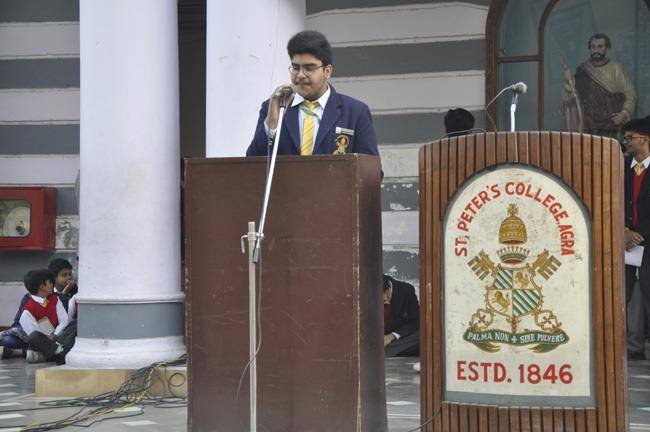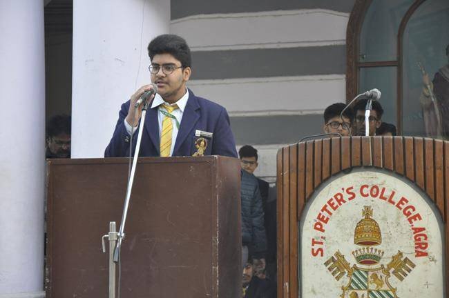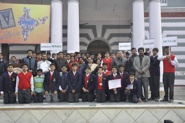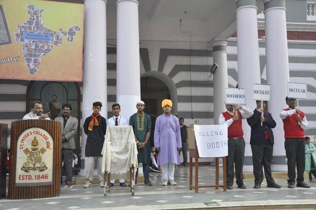 The Constitution Day was celebrated in St.Peter’s College Agra on 27th November 2017 during the morning assembly. It was held... to commemorate the completion of our constitution on 26th November 1949 as suggested by our P.M. Sir Mr. Narendra Modi. A week long programme was conducted from 17th of November 2017 which culminated with the celebration on Monday the 27th November 2017. The Chief Guest of the day was Rev. Fr. Varghese who gave us a very inspiring message of having trust in our constitution. He said the constitution should be regarded as a holy and sacred book. We should be honoring it and giving it the same status as of a holy scripture. He also emphasized on being truthful. Rev. Fr. Paul Thannickal (Principal) also expressed his views laying stress on the constitution to be an integral part of our life. The Programme was filled with singing, dancing and receiving the message of the constitution and the ideals of the preamble.