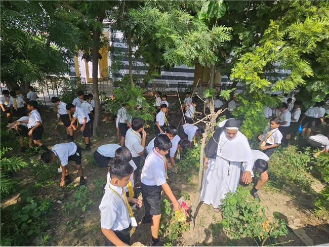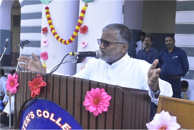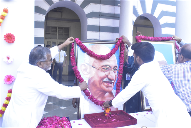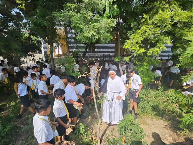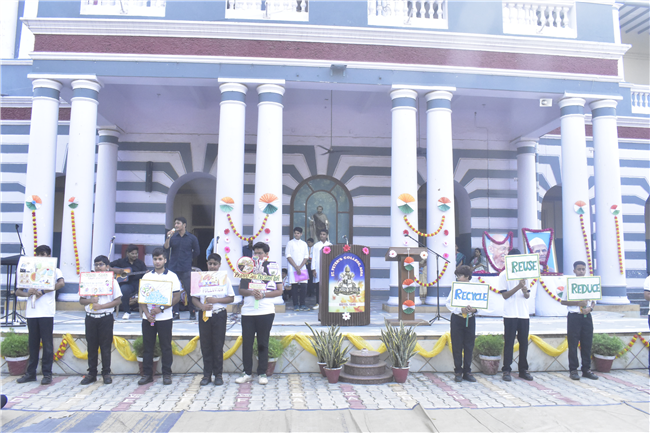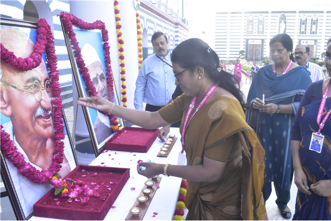 A Special Assembly was conducted in the school on 153nd Gandhi Jayanti. Rev. Fr. Bhaskar Jesuraj (Principal) and Rev. Fr.... Shajun (Vice-Principal) and teachers garlanded the portrait of Gandhiji and apprised the students about Gandhiji’s teachings.