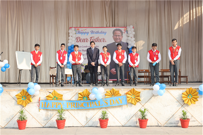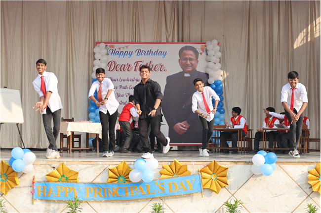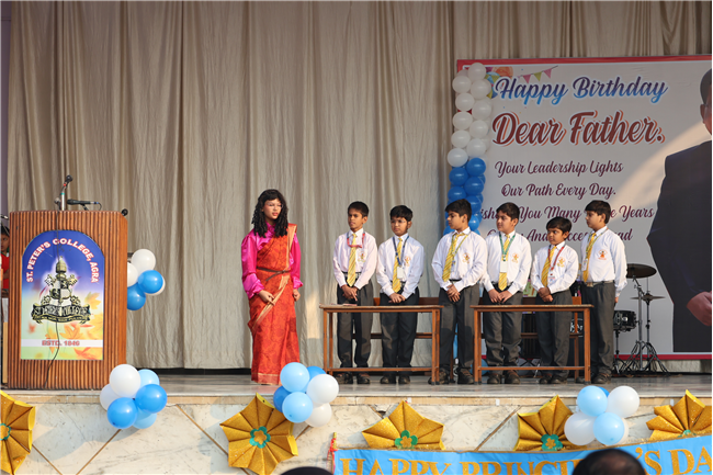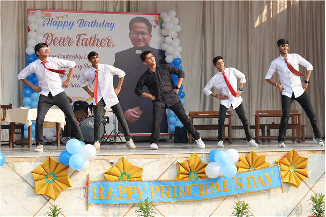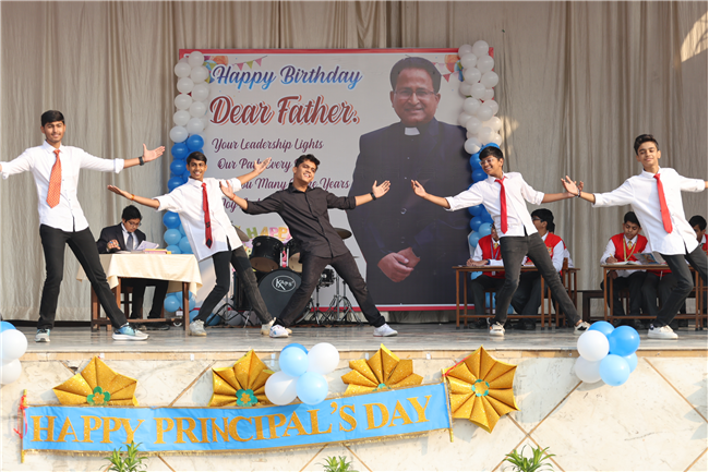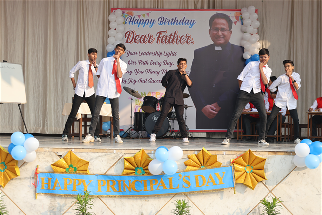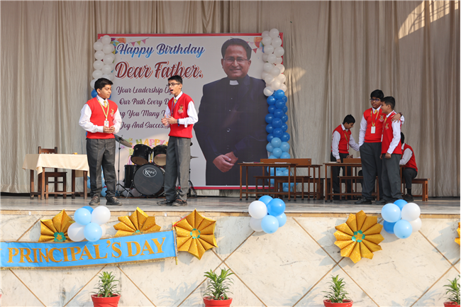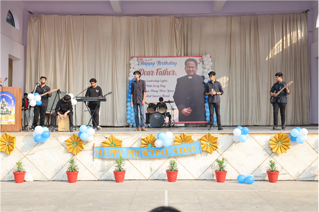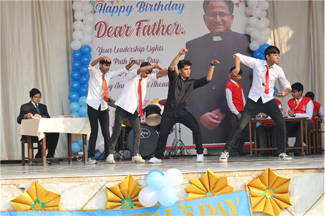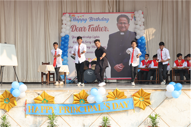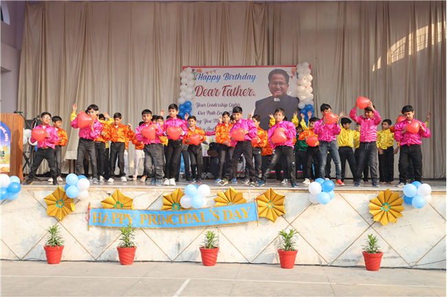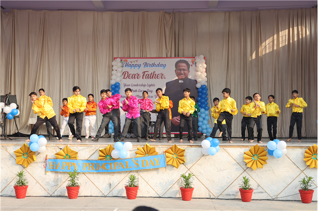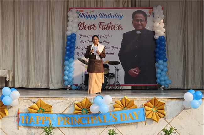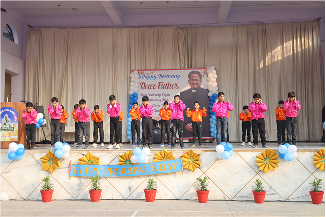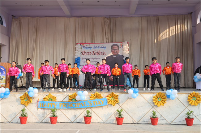 The Principal’s day was celebrated on 30th November, 2024 with great enthusiasm. Students performed rocking dance and sang melodious songs.... The program started with a prayer by Rev. Sr. Thereslit. Then Rev. Fr. (Dr.) Alwyn Pinto (Principal), Rev. Fr. Louis Xess (Vice-Principal), Rev. Sr. Thereslit (Headmistress) and teachers attended the cake cutting ceremony. The program ended with the inspiring words of Principal.
