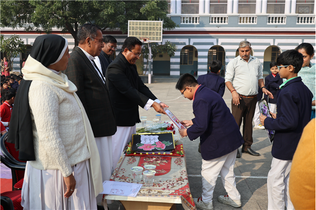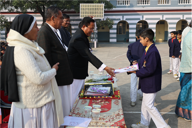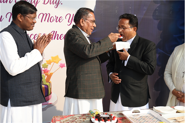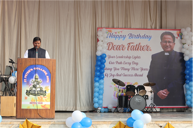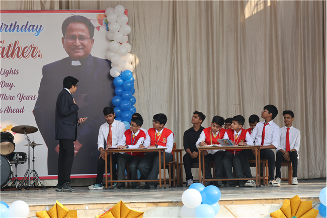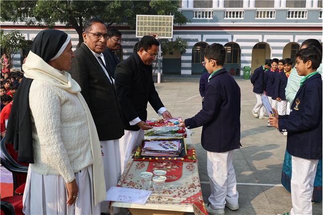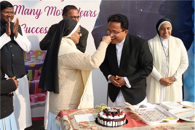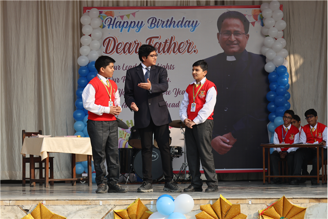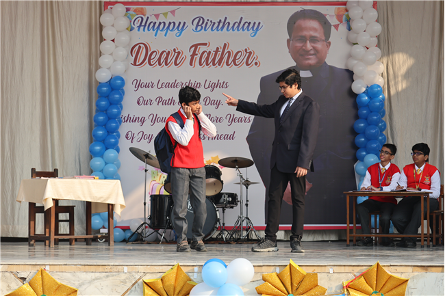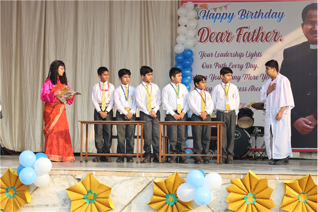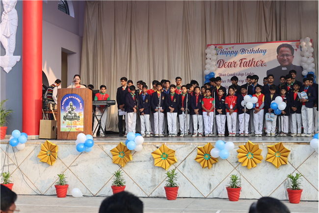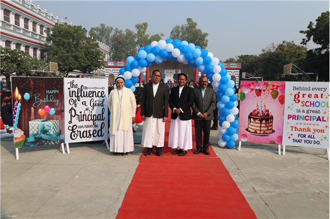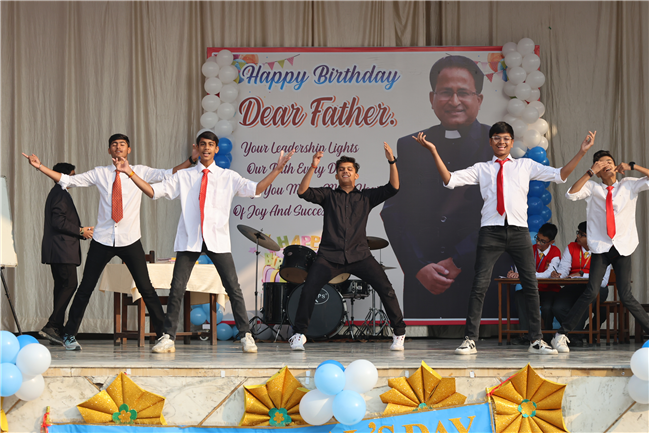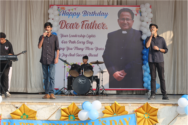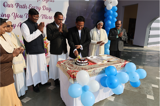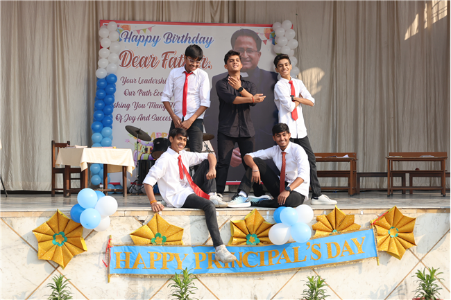 The Principal’s day was celebrated on 30th November, 2024 with great enthusiasm. Students performed rocking dance and sang melodious songs.... The program started with a prayer by Rev. Sr. Thereslit. Then Rev. Fr. (Dr.) Alwyn Pinto (Principal), Rev. Fr. Louis Xess (Vice-Principal), Rev. Sr. Thereslit (Headmistress) and teachers attended the cake cutting ceremony. The program ended with the inspiring words of Principal.