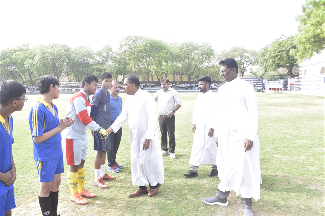 The Finals of the 54th Archbishop Dominic Athaide Memorial Football Tournament 2023 was held on 14th December, 2023 on the... lush green fields of St. Peter’s College. The final match played between St Peter’s College ‘A’ Team and Kendriya Vidyalaya-3. There were 9 teams in the competition and both the teams qualified to the finals after beating tier opponents in round of 9, quarter-finals and semi-finals. The Chief Guest of the day was Mr. Piyoosh Kant Rai (DSP) and Rev. Fr. Dennis D'Souza. Rev. Fr. Ignatius Miranda (Manager) and Rev. Fr. Bhaskar Jesuraj (Principal) were also present in the match. The Game ended on a thrilling note with St. Peter’s College winning the tournament with a Score of 1-0. The program was conducted by Dr. Anubhav Khandelwal. |